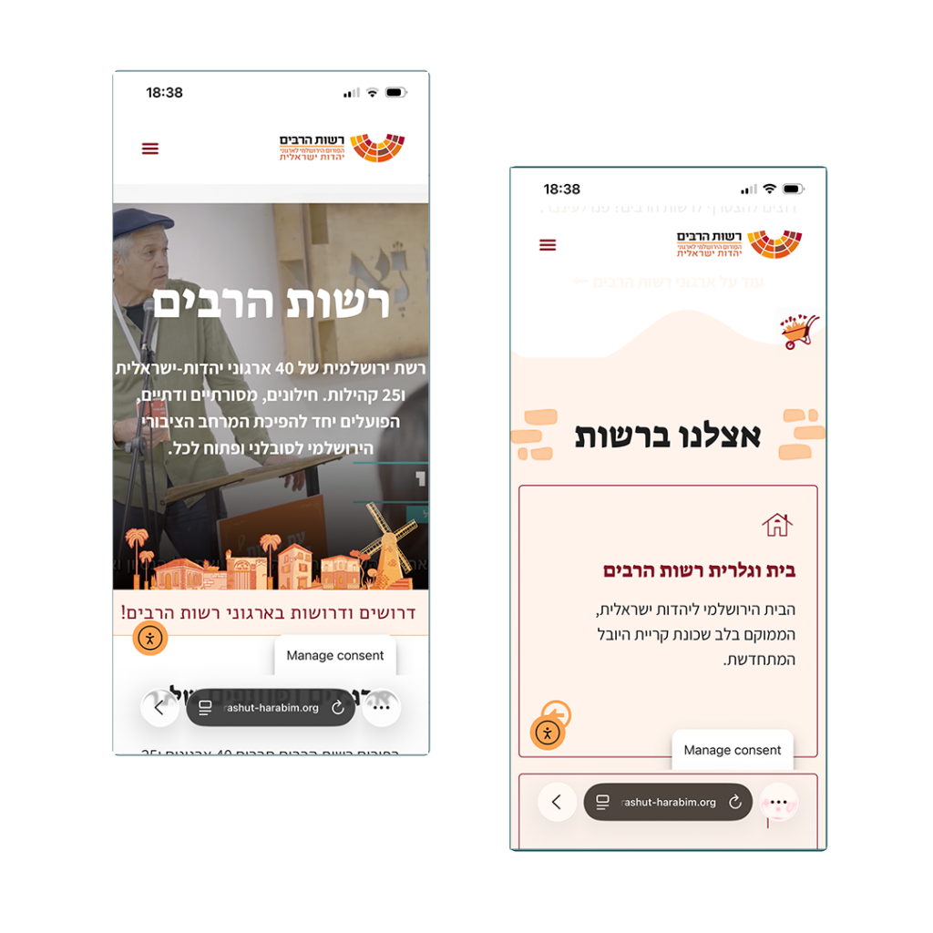 עיצוב האתר מבוסס על מיתוג הארגון, מתמקד בתצוגת השותפים והפעילויות הרבות בארגוני רשות הרבים בירושלים.
