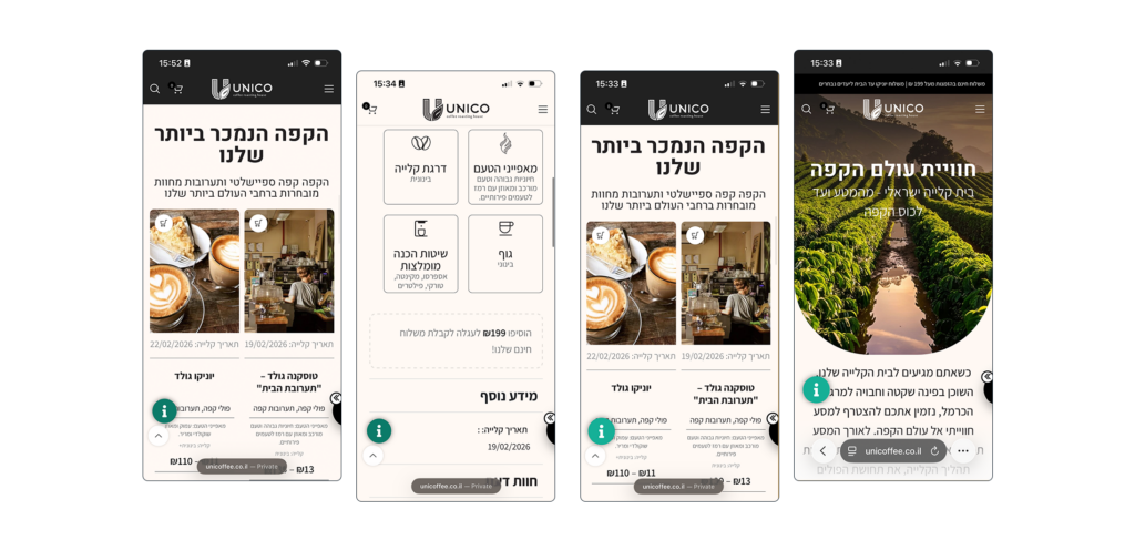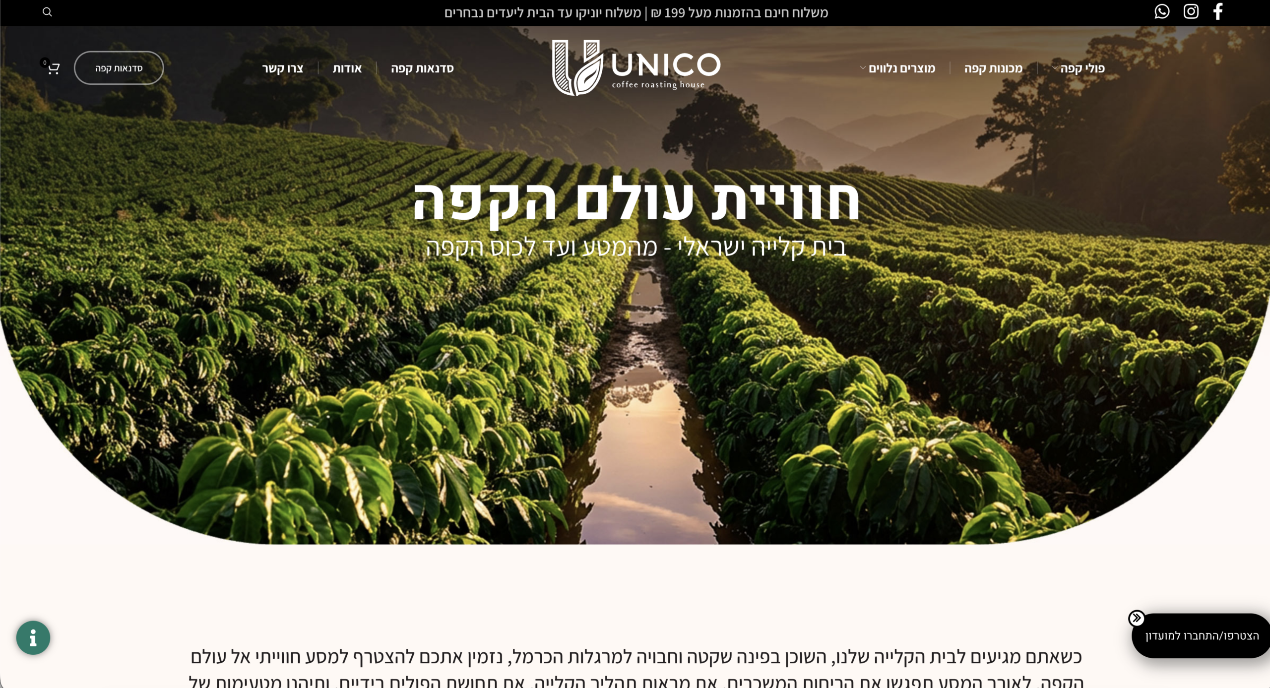 אתר Unicoffee מציג בית קלייה בוטיק ישראלי לקפה, שהוקם בשנת 2012 על ידי אסף ריפס, מתוך חזון ליצור קפה איכותי ללא פשרות, החל מבחירת חומרי הגלם ועד תהליך הקלייה. האתר מציע מגוון רחב של פולי קפה טריים, תערובות ספיישלטי, מכונות ואביזרי קפה, לצד סדנאות וחוויות טעימה. בית הקלייה ממוקם למרגלות הכרמל ומזמין את הלקוחות להכיר את עולם הקפה לעומק – מהמטע ועד לכוס, עם דגש על איכות, טריות ותשוקה למקצוע.